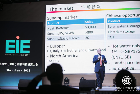 EIE 2016苏格兰(深圳)投融资大会现场爱丁堡企业Sunamp上台演讲。