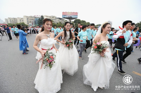 赛场中,最亮眼的还属5.2公里的婚纱跑组,100余名身着短款婚纱裙的选手们一改往日娇羞,在如潮欢呼中向重点冲刺。在5月20日即将到来之时,用完成5.2公里的公益跑的形式来表达彼此间的情谊,成为情侣、朋友之间最具有纪念意义的一件事了。