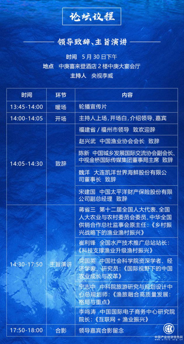 围绕这些热点话题,本次论坛在内容设置、嘉宾邀请和活动形式上进行了精心策划。30日下午的领导致辞与嘉宾主旨演讲活动中,将有全国人大农业与农村委员会委员、中华全国供销合作总社监事会原主任蒋省三、中国渔业协会会长赵兴武、全国水产技术推广总站站长崔利锋、中国城乡发展国际交流协会副会长陈新、中国社会科学院资深学者、经济学家、研究员党国英、中科院旅游研究与规划设计中心总规划师宁志中、中国国际电子商务中心研究院院长李鸣涛、大连凯洋世界海鲜股份有限公司董事长魏洋、中国太平洋财产保险股份有限公司副总经理宋建国等领导、专家、企业家与会,为来宾奉上精彩的致辞或主旨演讲。