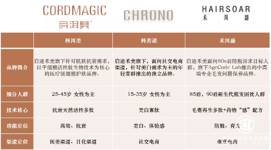 目前,启迪禾美采取多品牌孵化模式——基于不同的细分抗衰需求和商用化的创新多肽成分,已经成功孵化科洱美,科若诺,禾洱盛三大专业护理品牌。公司目前分别在北京和上海成立营销中心,覆盖线上、线下全销售渠道。