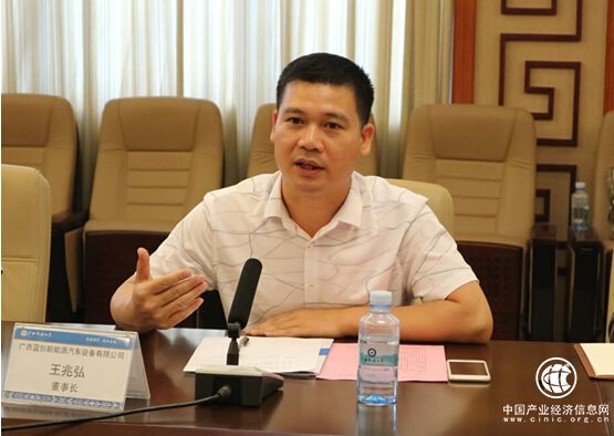 王兆弘董事长介绍了公司基本情况及公司产品市场优势。公司专注于新能源汽车充电系统及配套服务,主要产品有汽车直流充电桩,交流充电桩,电动自行车充电设备,充电桩运营管理系统平台等,产品功率基本满足目前市面上绝大部分车型的快(慢)速充电需求。他说,广西蓝创新能源汽车设备有限公司与广西民族大学开展合作,联合开展项目研究,共同攻克技术难关,企业将为民大师生的实习实训提供便利,支持广西民族大学相关的科技成果到企业实施转移转化,为企业提供一定的技术支持与技术服务,不断加强产品与升级的系统,整体提升企业研发能力和生产力。