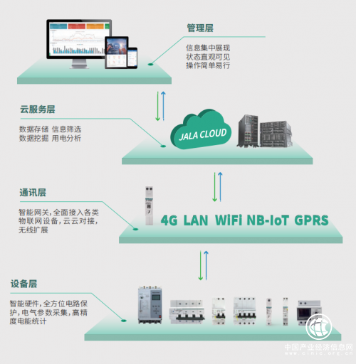 “设备层JL系列智能断路器,作为用户和电力的交互枢纽,具备典型的物联网终端特征,也是泛在电力物联网在用电侧的重要入口。可以有效解决数据连接最后一公里的问题,给泛在电力物联网的建设提供支撑。”