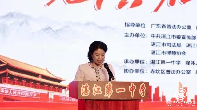 为大力弘扬宪法精神,进一步激发青少年学生宪法学习热情,根据省普法办、省司法厅、省教育厅、团省委等部门关于组织落实"宪法在我心中"万场法治宣传进校园活动的工作部署,5月31日上午,由广东省普法办公室、广东省司法厅指导,中共湛江市委宣传部、湛江市普及法律常识办公室、湛江市司法局、湛江市教育局、共青团湛江市委会、湛江市律师协会主办的湛江市"宪法在我心中"法治宣传进校园活动启动仪式暨"宪法教育大课堂"师资培训班在湛江第一中学举行。省司法厅巡视员张荣辉、市政府副市长崔青、市政协副主席钟胜保,以及市委宣传部、市普法办、市司法局、市教育局、团市委、市妇联、市律师协会等单位的有关领导,市普法成员单位分管领导,各县(市、区)司法局分管领导和普法与依法治理机构人员,市"七五"普法讲师团成员代表,各县(市、区)"七五"普法讲师团成员代表,教育系统培训对象及湛江第一中学的师生共1300余人参加。