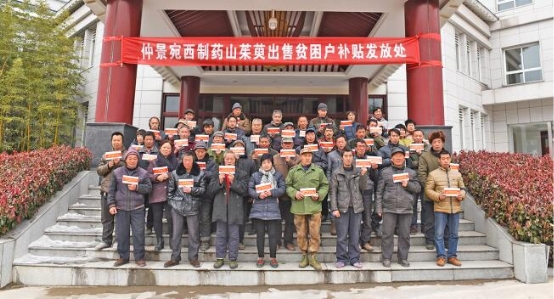 在河南西峡五个乡镇建立20万山茱萸种植基地,为南水北调工程上游水源涵养地植被保护、净化水源做出了贡献。建立仲景百草园、中药材标本展厅,为中医药大中专院校的学生提供实习基地,成为中药材文化科普的亮点。在河南西峡5个乡镇吸纳了1195名贫困人员,为23个山茱萸基地村贫困户实施“四免一提高”政策,鼓励他们通过种植药材实现脱贫;开发公益岗位,安排60多名贫困人员就业。