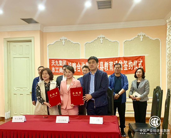 同一天,天津市委统战部副部长、市工商联党组书记、常务副主席王禹,天津市光彩事业促进会办公室主任李镭一行来访天九总部,尚敬龙、袁宁等集团领导热情接待。双方进行了亲切会谈,王书记对天九共享积极参与精准扶贫,并为天津精准扶贫捐款100万元的大爱精神表示高度赞赏和感谢,现场见证捐赠仪式。