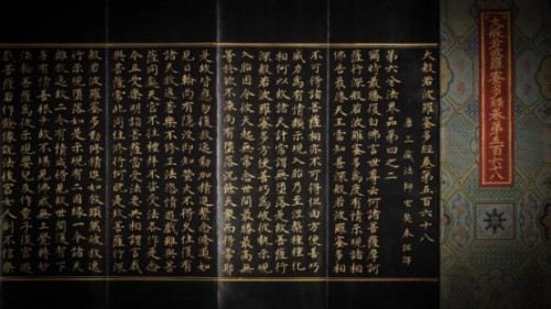 北京故宫博物院图书馆现存的清代名臣写经进呈本是很具宫廷特色的特藏文物,装潢考究,精美华丽,很能代表清前期书籍装帧工艺的最高水平,纸张为宫廷庫磁青,上下花边为如意馆绘制西蕃莲纹,写经字体恭缮精写,富丽堂皇,最能反映出清代馆阁体书风的面貌。泥金写经熠熠生光,恭楷墨书古雅端庄,更有名家精写袖珍小经卷,蝇头细书,一笔不苟,显示出非凡的书法功力。宫廷金字经是皇宫供奉的圣物,极少流出宫外,有丰功伟绩的大臣,皇帝会赐一册供奉。极其珍贵的宫廷写经是用金写成,是内务府用最上等最纯的黄金经过特别调制的,特点是奢华、醒目、经久耐用,能历数百千年而不褪色,诚乃宫廷法宝。