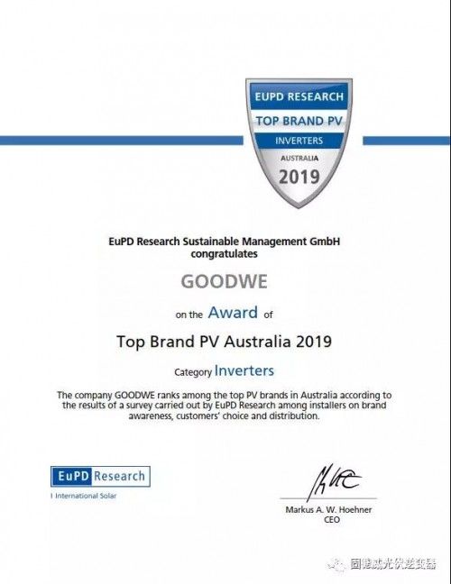 凭借产品可靠、卓越的性能,固德威已经在荷兰市场连续两年获得该奖项,此次再次在澳大利亚市场获得“顶级光伏品牌大奖”,充分表明了固德威在国际市场得到的高度认可和热烈欢迎。可为全球投资者和开发商提供长期高额的投资回报。这是固德威多年深耕国际市场,不断进行产品品质和服务升级的结果。