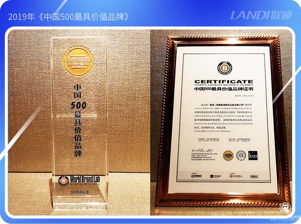 近日,由世界品牌实验室主办的(第十六届)“世界品牌大会”在北京·中国大饭店顺利举行,会上发布了2019年《中国500最具价值品牌》分析报告,我国电子支付行业的知名企业——福建联迪商用设备有限公司(简称联迪商用)以76.61亿元人民币的品牌价值首次入选。