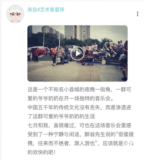 无数名Soul用户参加了此次活动,一名自成都的用户记录了所住小县城中一场独特的演唱会,由一群老年人演奏,这些传统的器乐,已经融入了这些爷爷奶奶的日常生活,也感染了新一代年轻人。
