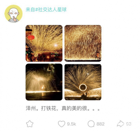 在众多传统文化中,濒临失传的打铁花是最受用户们的喜爱。高温之下的朵朵铁花绽放夏日夜空,如天女散花般绚烂夺目,令Soul用户赞叹不已。