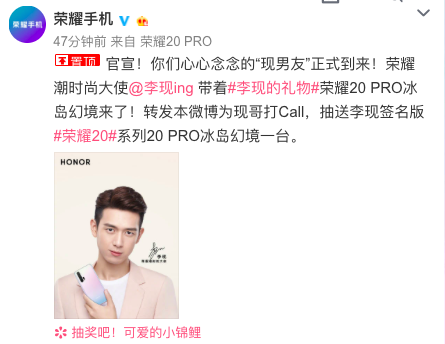 李现同款时尚单品,荣耀20 PRO冰岛幻境美无止境