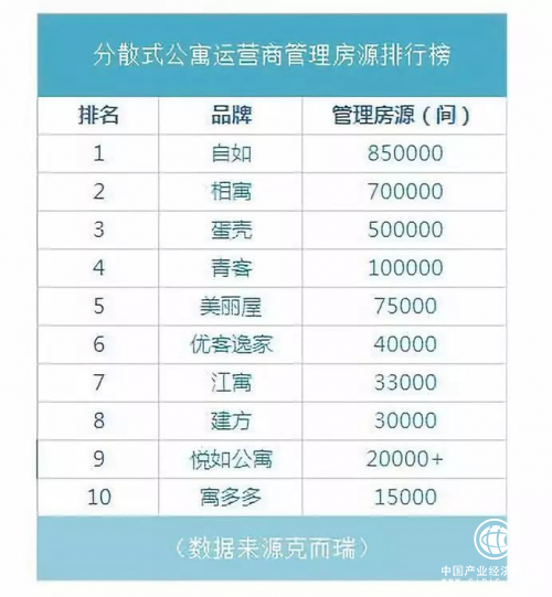 分布式公寓运营商管理房源排行榜——北京自如高居榜首