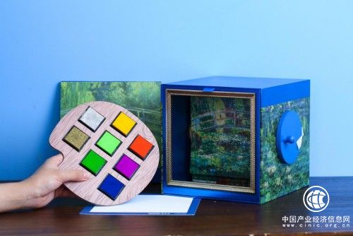 合生元不只从视觉和心灵上让孩子们感受到艺术的熏陶,更将艺术与产品结合,从莫奈的集大成之作《睡莲》中汲取灵感,将其画作《睡莲》打造成了一个能够复刻绘画全过程的手摇动画机定制礼盒,从立体书到莫奈画作,再到画笔调色盘,一件件精美好物十分吸睛。