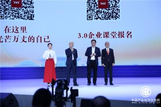 浙江华联集团董事长徐爱华,来自阳明先生的故乡余姚,她学习中华文化两年时间,个人生命发生了很大变化。为了帮助更多企业家读懂时代,读懂中华文化,读懂下一件大事,她发起成立了“新时代企业家学院”,其他四位企业家——徐少春、刘东华、江南春和王振滔(奥康集团董事长)一起登台,为“新时代企业家学院”揭牌,并在现场征集第一批企业家学院的学员。