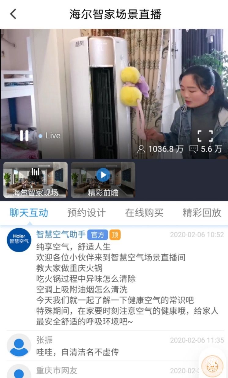 在天津海光寺苏宁门店,海尔空调销售人员通过微信社群交互和抖音直播等形式,帮助用户在线选健康空调。2月9日,天津陈先生在看直播时,对天净空调的紫外线杀菌功能非常感兴趣,他在线上咨询,“这款空调杀菌功能怎么使用?杀菌功能可以单独开吗?”了解到空调的杀菌效果后陈先生果断下单:“家里有老人和孩子,长期呆在家对空气消毒就更关注了,这款空调正好能解决这个问题。”