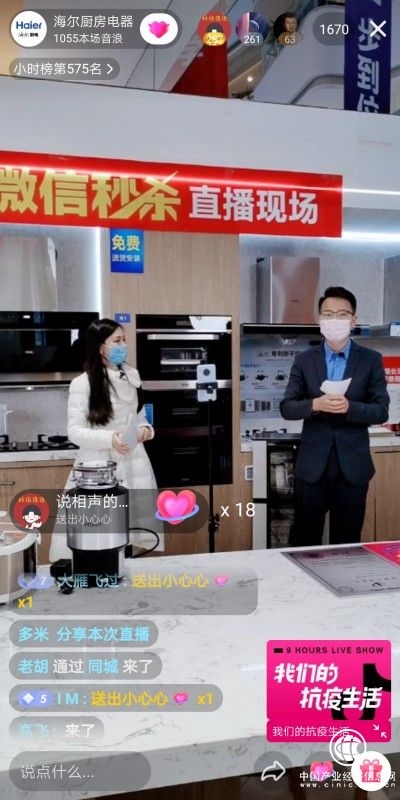 突如其来的疫情,让电商直播成为了连接商家与消费者的核心中枢。2月23日10:00-12:00,海尔厨电在一直播展示了健康智慧厨房场景,关于消毒柜的健康无菌场景、燃气灶的健康烹饪场景以及油烟机的无烟健康场景都说透了,让用户更直观地感受健康厨房生活场景,并且直播2小时 220万人参与,当日零售占月度零售的30%,2月份零售实现45%的增幅。