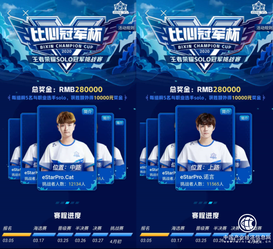 由比心陪练举办的比心冠军杯SOLO冠军挑战赛,今天开启报名通道,总奖金高达28万元,超过不少职业赛事奖金。据官方数据,上线不到5天,报名挑战人数超过50000人,其中超过12000人选择挑战eStarPro.cat。