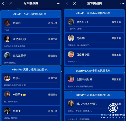 此次挑战赛分为5个赛道,分别由eStarPro的5位明星选手坐镇。玩家在报名页面选择自己想要挑战的选手,填写基础信息完成报名。经过海选赛、晋级赛、半决赛、决赛等多轮对决,最终决出的每组1-3名分获3000、2000、1000元奖金,每组的前5名玩家,将获得与eStarPro冠军选手solo的资格。如果玩家在solo赛中获胜,将额外获得1万元奖金。