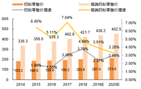 所以我们看到,国内奶粉单价由2014年183.2元/kg提升至2019年的207元/kg。