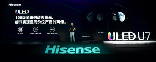 海信此次面向全球推出的ULED超画质电视U7可以说是为电影、体育和游戏爱好者量身打造的神仙级产品。U7在今年海信春季发布会有过简单亮相,因为应用了海信独有的ULED100分区背光控制技术,支持4K 120HZ信号输出和VRR专业游戏模式,被高端玩家期待已久。