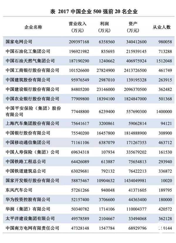 9月10日,2017中国企业500强分析报告正式发布,这也是中国企业联合会、中国企业家协会连续第16次向社会公开发布“中国企业500强”排行榜。哪家企业最赚钱?哪些企业新晋入榜?想要入围500强年收入最少要多少亿?入围企业又反映出中国经济发展怎样的特征?