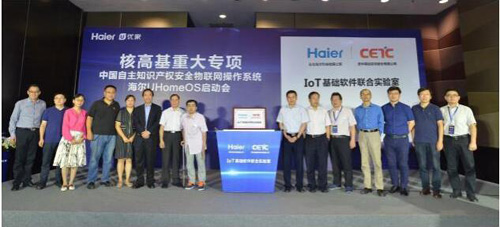 9月15日,在海尔主导的“核高基重大专项——面向智能家电的物联网安全操作系统海尔UHomeOS启动会”上,海尔家电产业集团CTO、副总裁赵峰,普华基础软件总经理江水共同揭牌并宣布,联合成立“IoT基础软件联合实验室”,分工合作,布局物联网操作系统领域,共同实施面向智能家电的物联网安全操作系统研发与产业化推广,迎接中国自主可控的物联网智慧家庭操作系统的崛起。