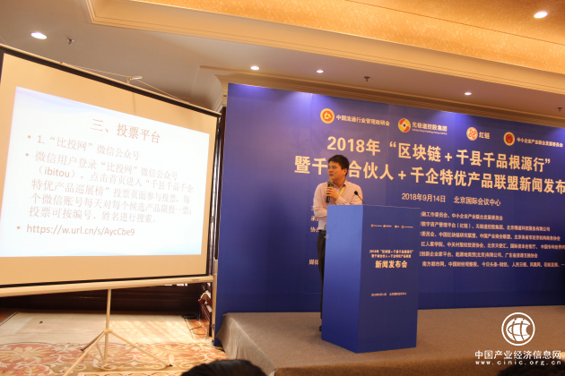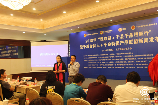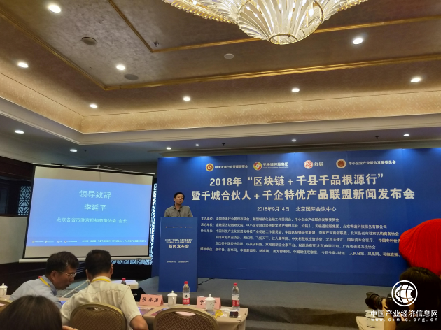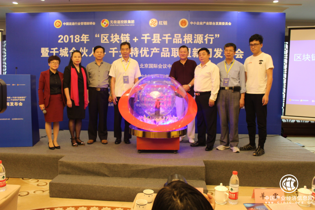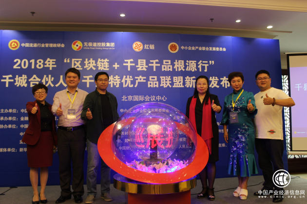 2018年“区块链+“千县千企千品根源行”暨千城合伙人+千企名特优产品联盟”新闻发布会由中国流通行业管理政研会、新型城镇化金融工作委员会、中小企业产业联合发展委员会联合主办,金融委区块链研究院、中小企业网红经济数字资产管理平台(红链)、无极道控股集团、北京得道科技服务有限公司联合承办。