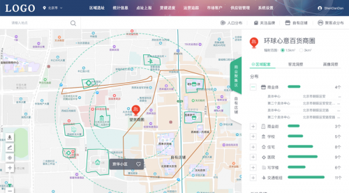 GIS可视化地图系统,可对区域配套、客流洞察、画像洞察全方位具体描述。对某一区域辐射范围内商业生态一目了然,将场特征与人属性完美结合。睿选进一步完善了企业品牌与周边客群的匹配度,运营阶段信息精准度获得实质提升。睿选可将表格化信息进行可视化地理信息展示,将用户带入更真实便捷的全业务场景体验中。
