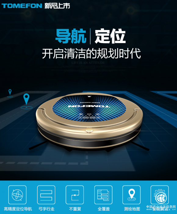扫地机器人原本普及率不高的重要原因是——清洁时没有规划,如同走迷宫般不靠谱。德国斐纳TOMEFON TF-D60扫地机器人是一款真正能规划,并且拥有记忆系统的智能产品。这款产品独特的HSIR+多点矩阵智能构图系统可做到室内精准定位以及自主导航,如同拥有管家般将房间划分为不同区域,同时根据不同区域的实际情况进行有针对性的清洁。此外,这款扫地机器人还搭载了最新定位系统,无线载波室内定位系统通过内置的探头能突破范围控制,实施全屋定位。在清洁时,这款机器采用的是更高效的弓形清洁路线,不会造成遗漏且能轻松清理死角。杜绝了很多扫地机器人清洁不彻底的弊端,也减少了主人进行二次清洁的烦恼。
