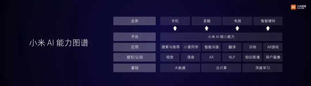 例如:AI的声觉能力。最显而易见的是小爱同学,2018Q3财报显示,小爱同学月活已突破3400万。背后是小米基于AI声学深耕自主的MiNLP平台,以及基于1000+企业开发者和7000+个人开发者的开放平台。