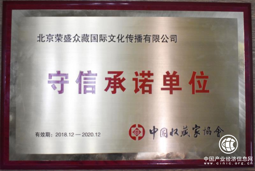 2018年12月,中国收藏家协会现任会长罗伯健先生 授予北京荣盛众藏文化连锁机构“守信承诺单位”。