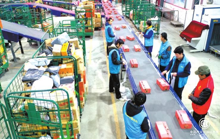 渭南邮政电商工作人员正在打单。消费者下单,邮件处理中心即打,工人在传送带上即贴,邮政的物流车装满即发。全流程中,好几个环节真正以秒计算。